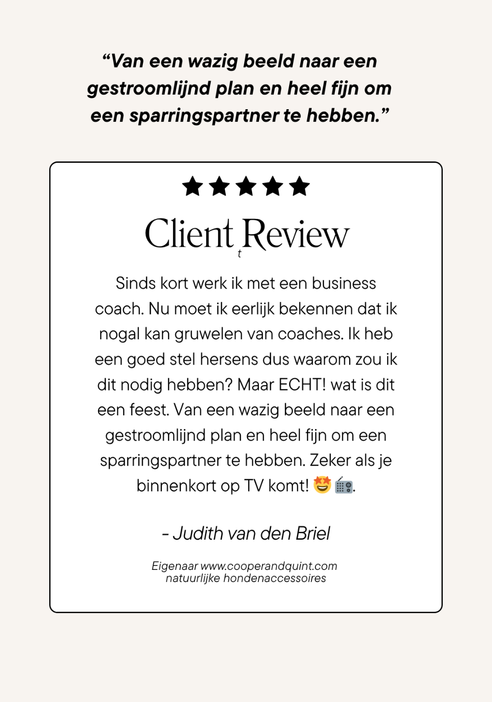 Je voelt dat je daar wel wat hulp bij kunt gebruiken. Iemand die al het potentieel ziet dat nog verborgen zit in jou en in jouw business en die jou helpt om dat naar buiten te brengen.