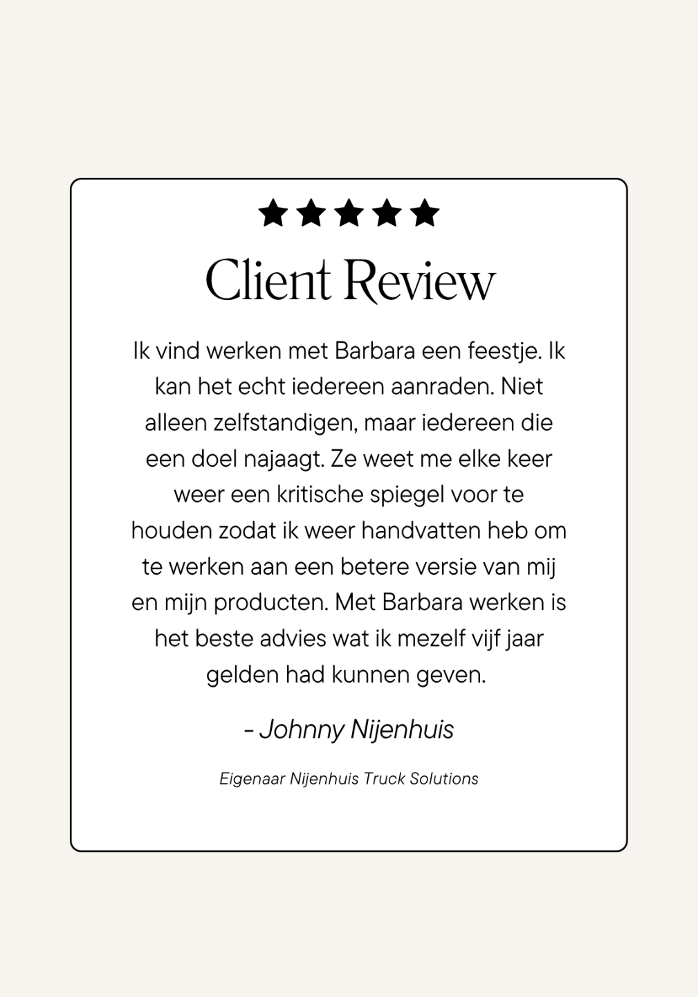 Ik geef je dan ook geen kant-en-klaar stappen plan voor je bedrijf. We gaan eerst in kaart brengen wat jij en jouw onderneming écht nodig hebben.